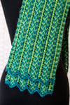 Mosaic & Lace Knits is an introduction to a technique that I have been developing over several years that brings colorwork into lace using slip stitches. Handling only one strand of yarn at a time, no carrying along the row or stranding, allows development of colorwork patterns without any floats running behind your work and obscuring your lace.