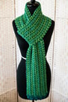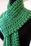 One of my favorite ways to wear a scarf is by doubling it over and then pulling the ends through the created loop, but that technique has one undesirable result. One of the “tails” will always have the wrong side facing the world. this scarf is my solution to that problem. By creating two separate tails you can then join them together with the right sides both facing out. once joined, the pattern is continued until you have enough length to double over and form a loop. I think of it as a “self-styling” scarf. Put it on, pull the tails through the loop and you are ready to go.