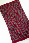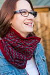 Worked in Obsidian and Burmese Ruby, the soft and deeply colored Baah! Yarn almost glows from within. There is a large palate of Baah! available and I cannot wait to see what combinations knitters choose.