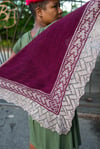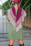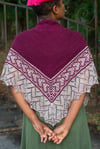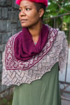 The Pac Man feel led me to choose a maze like linear lace pattern to finish off the shawl with a flourish. If you would like to make the shawl larger there is a chart where you can repeat the lace - but you will need more yarn.