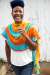 The Yellow/Orange/ Teal is Verve; 100% Merino, 400 yards/100 g (color names Chimera & Naiad).